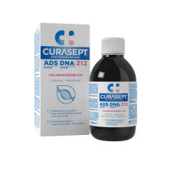 CURASEPT ADS DNA® 212 munnskyll, 200 ml. Leveres i ferdigblandet oppløsning med 0,12 % klorhexidin. Beregnet kun til 4-6 ukers bruk, eller etter anbefaling fra din tannlege.